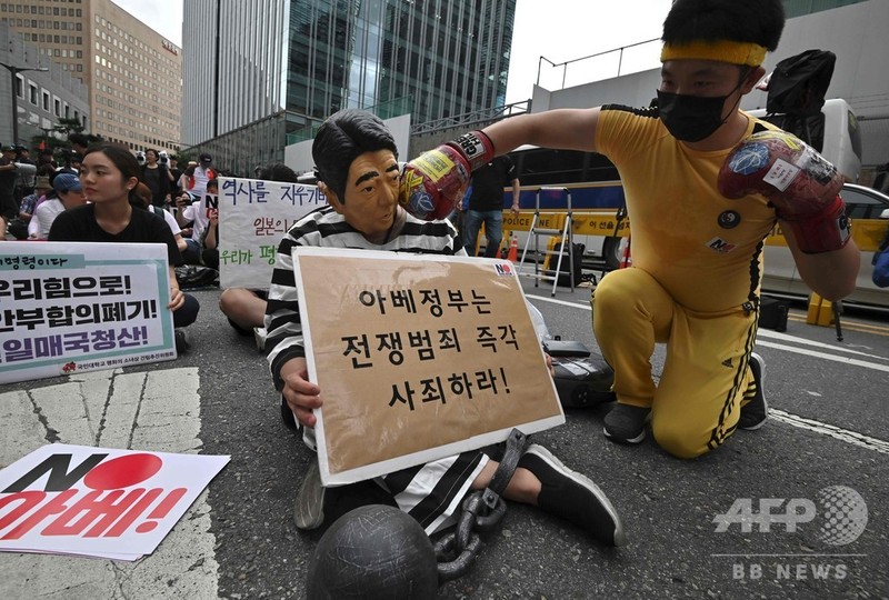 この日の午後2時から平和蝶、民衆党など6つの大学の学生団体の会員60人余りも同じ場所で集会を開き、日本を非難した。彼らは「安倍て平和オーラ」という文句が書かれた横断幕を持って仁寺洞と鐘閣などまで行進した。