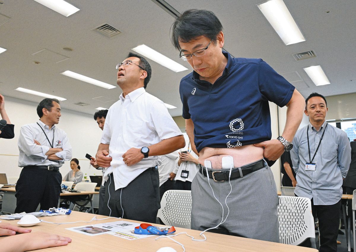 生理痛の疑似体験は、女性の健康課題に理解を深めるとして一部の企業で行われており、参加者の下腹部に筋電気刺激(EMS)の電極を装着し、子宮の収縮による痛みを再現する。