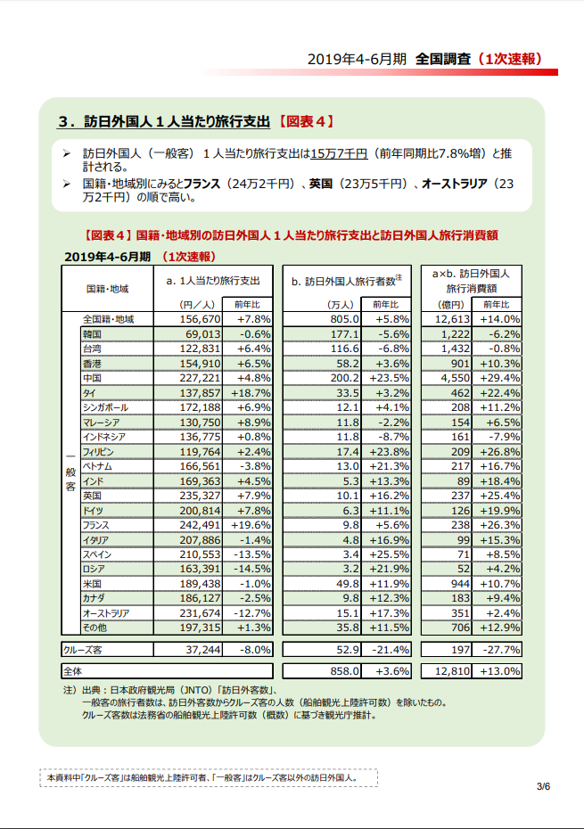 7月17日、日本の観光庁は訪日外国人消費動向の「2019年4月~6月期」1次速報を発表、