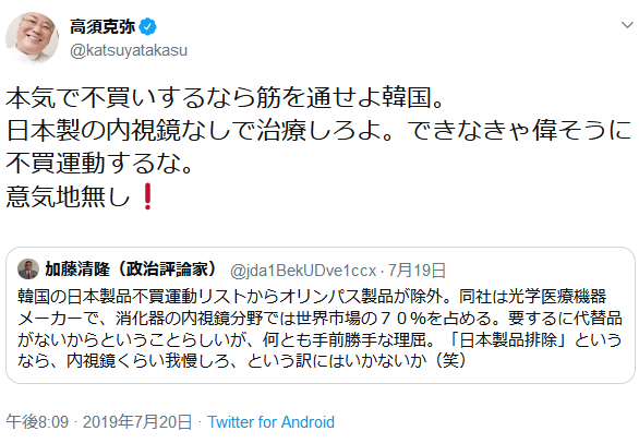本気で不買運動するなら買って来ないし触りたくも無いのではないか?胃カメラや内視鏡手術を拒否しない韓国人は親日派