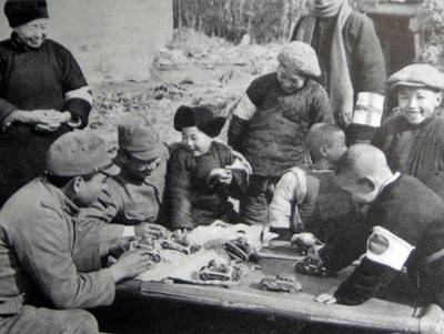 1937年12月20日、朝日新聞カメラマン、林さん撮影。南京住宅街で日本兵と遊ぶ中国の子供。>>236