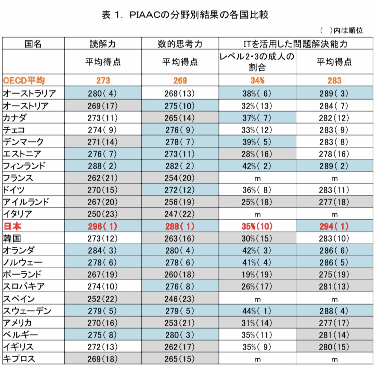 それって、問題が漏洩でもしているんだろうか?「成人力」日本は世界1~2位、OECD 16万人参加の国際調査
