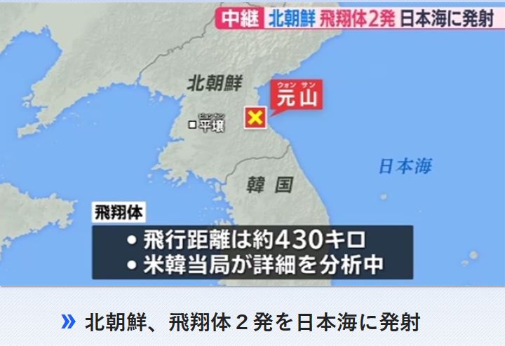 居るかどうか分からんが。短距離ミサイルとみられる」韓国軍 北朝鮮の飛しょう体