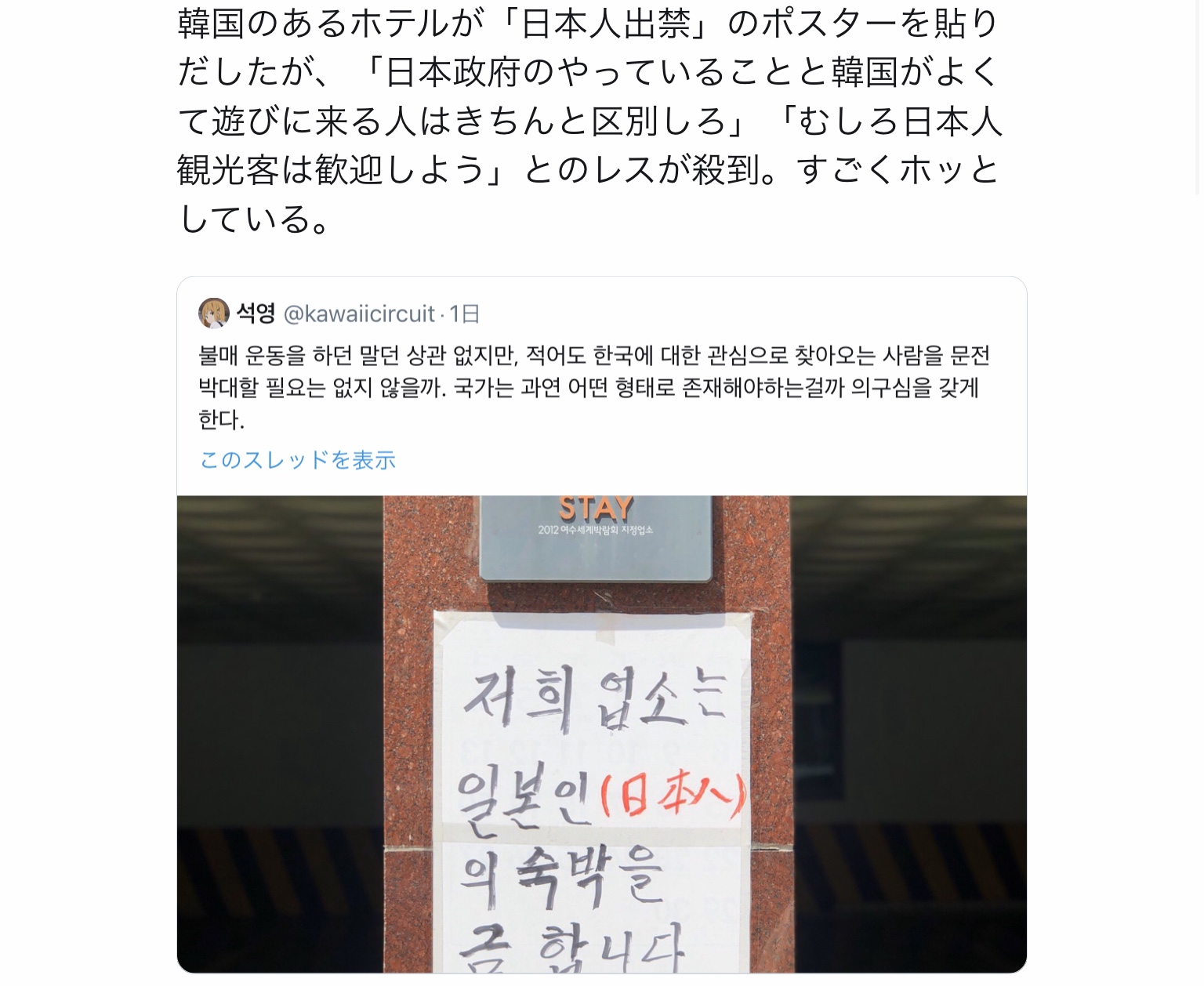 「これはクールだと?なぜ国の外交マクロレベルでの不買ラング個人に対する差別が同じ線上に上がってくることができてい "、"ここまでする必要がありますか? "、"人種差別、外国人嫌悪を残す韓国にお金を倒してきた人なぜ防げ」など理解できないという反応がありました。