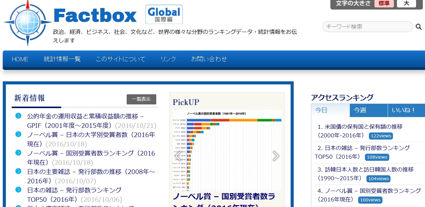 政治、経済、ビジネス、社会、文化など、世界の様々な分野のランキングデータ・統計情報をお伝えします