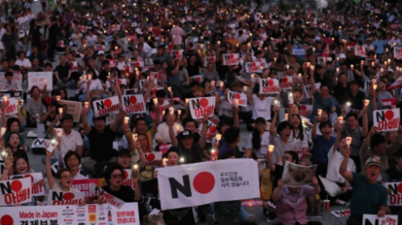 光化門広場では、最新の経済報復を主導した日本の安倍晋三政権を糾弾するキャンドル集会が開かれた。