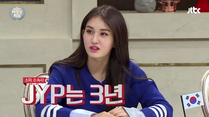 somi가 이야기 하는 jyp 연애금지의 이미지 .이동도면 신청 안합니까??