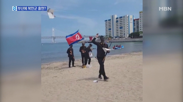 퍼포먼스를 하고 있는 것을 확인했다. 이들은 광안대교를 배경으로 북한군 복장을 입고