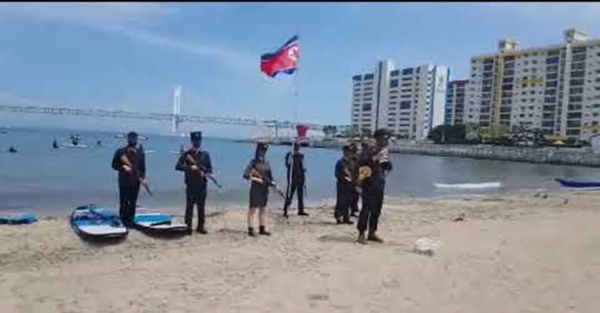 시민들이 ‘해변에서 다수인이 북한군인 복장으로 인공기를 들고 해변을 걷고 있다’는 신고를