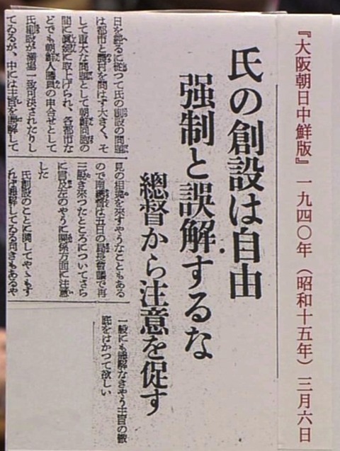 日本に呼び込むな 在日コリアン支援ネットちなみに、日本風の姓名への改姓改名は、朝鮮では届け出制だったのに対し、台湾では許可制だった(李登輝元台湾総統談)。