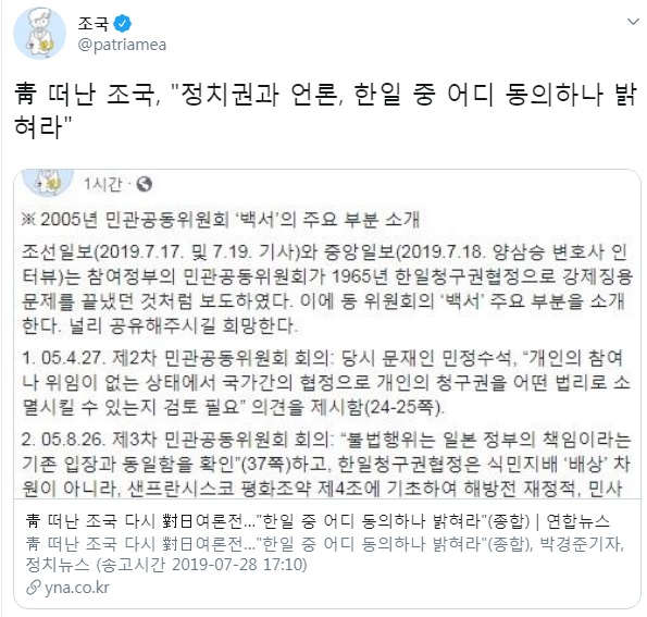 진정한 애국보수라면 일본이 주적이라는 조국의 충고 받아들여야 한다