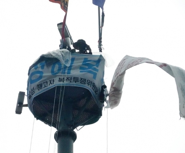 金氏は、ソウル瑞草区三星生命がある江南駅ロータリー前CCTV鉄塔の上で50日間の高空籠城を展開している。