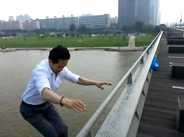 これは今から飛び込もうとしてる人を説得しようとしてる人とそれを撮影してる人?