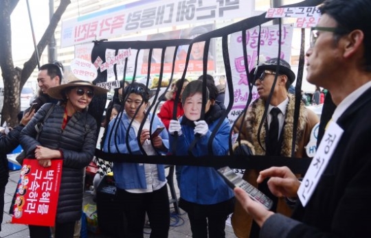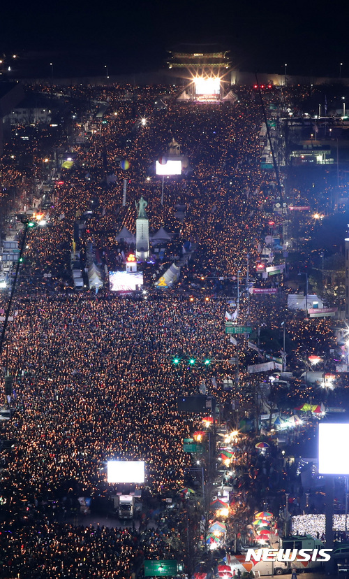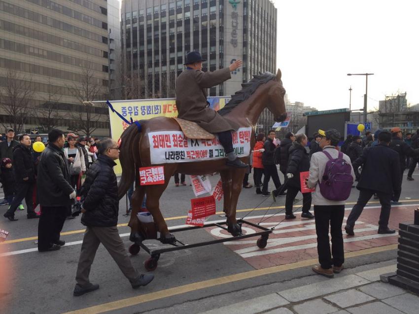 朴槿恵(パク・クネ)大統領の退陣を求める50代の男性がソウル光化門(クァンファムン)広場の地面に火をつけようとしたが、顔に火傷をした。