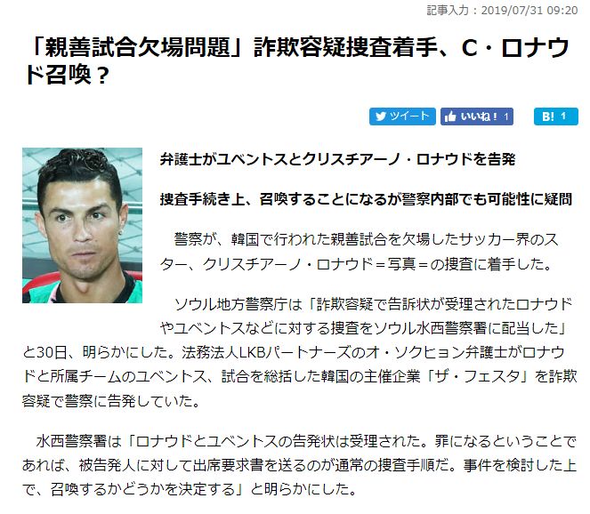 韓国人批判一辺倒ではないロナウドさぞかし不快だったでしょう