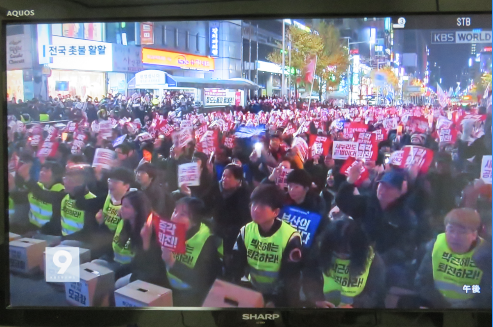 普通にあのデモを見た外国人は、大統領はクーデターか世襲で就任したのだと思ってるだろうね。大統領を選んだ責任は国民にあるわけで、選挙で選んだのなら民主主義のルールに則って退陣させなければ制度自体が崩壊する。君たちがやろうとしているのは共産革命そのものだよ。21世紀にもなって、民主主義国家がわざわざ没落著しい共産主義を選択するのを見るとは思わなかったよ。これこそ歴史に残る出来事だよ。前代未聞、空前絶後だね。プロ市民を除いて、年齢層が幅広く参加