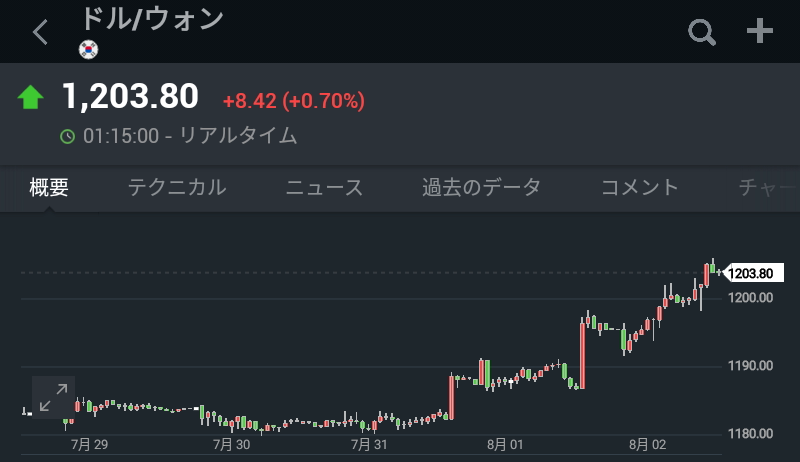韓国が大騒ぎし過ぎるから…1203までしか戻らず、