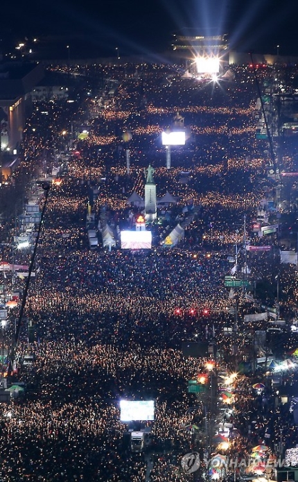 面白くなるね。松明になった232万本のろうそく「朴槿恵は即刻退陣せよ」