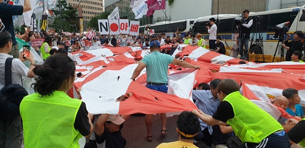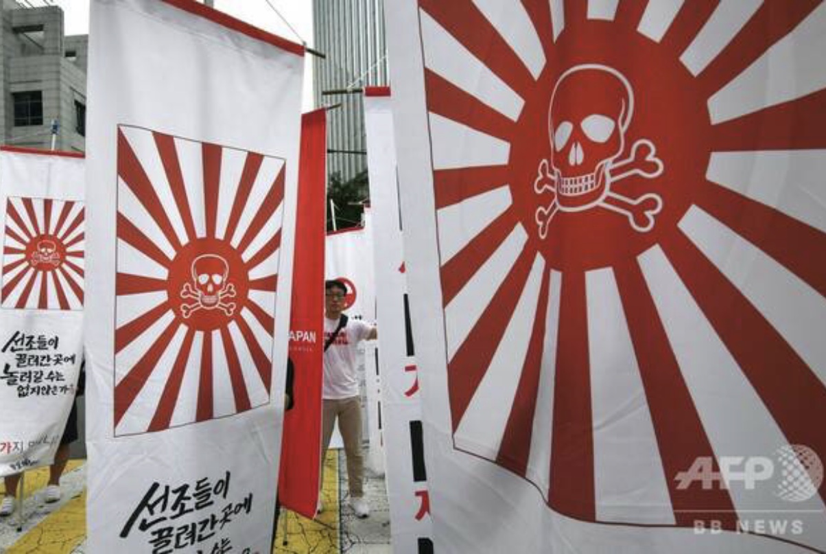 日本国旗が燃やされて日本製品が破壊されてる(韓国で)状況に