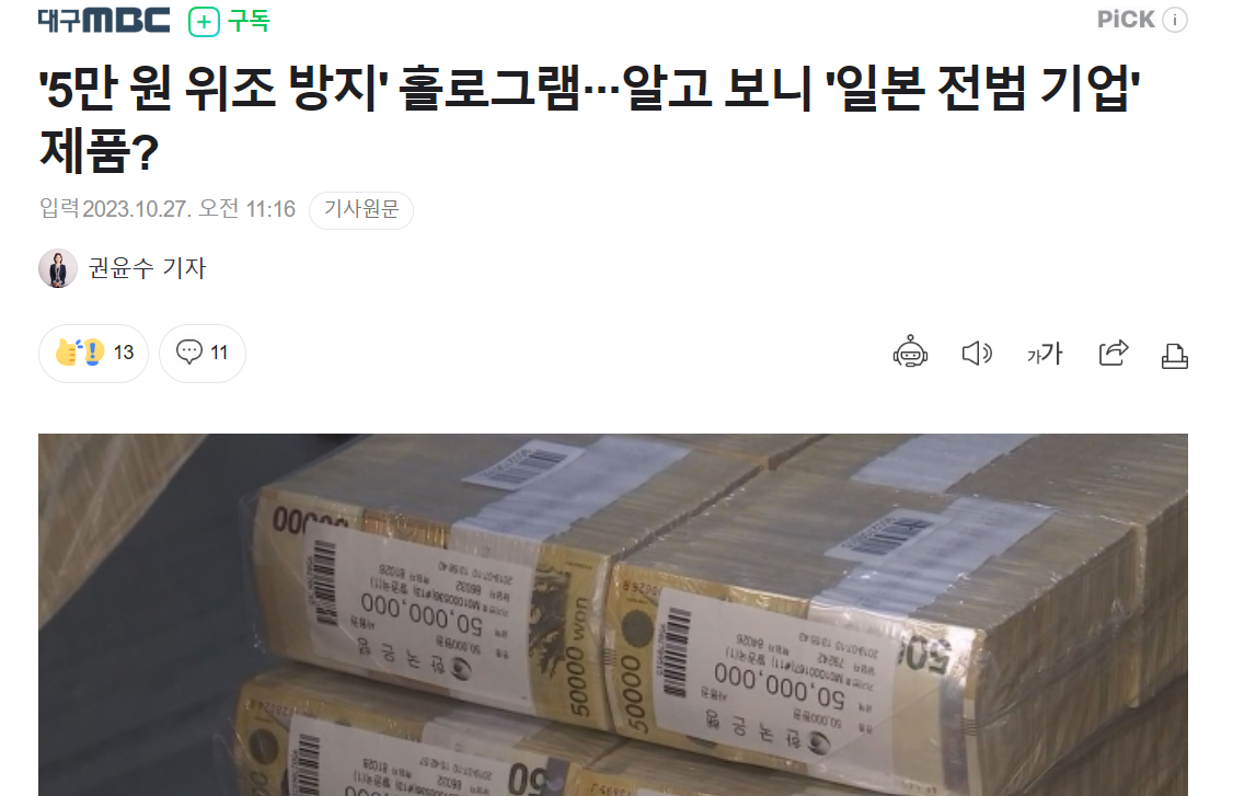 韓国紙幣のホロって「大日本印刷」製のはず。