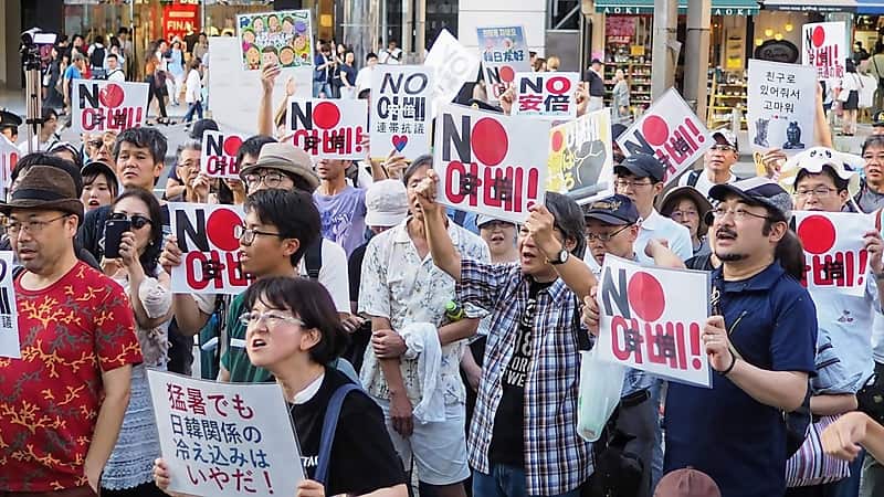 強制動員問題と日本の貿易報復などで韓日の対立が激化する中、4日、日本東京で安倍晋三(安倍晋三)首相政権を糾弾するデモが行われた。