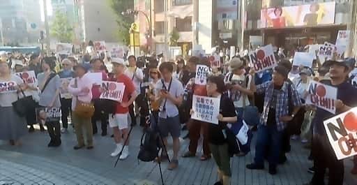 韓国と対立水位を高めている安倍晋三首相を糾弾する日本の市民の集会が東京都心のど真ん中で行われた。