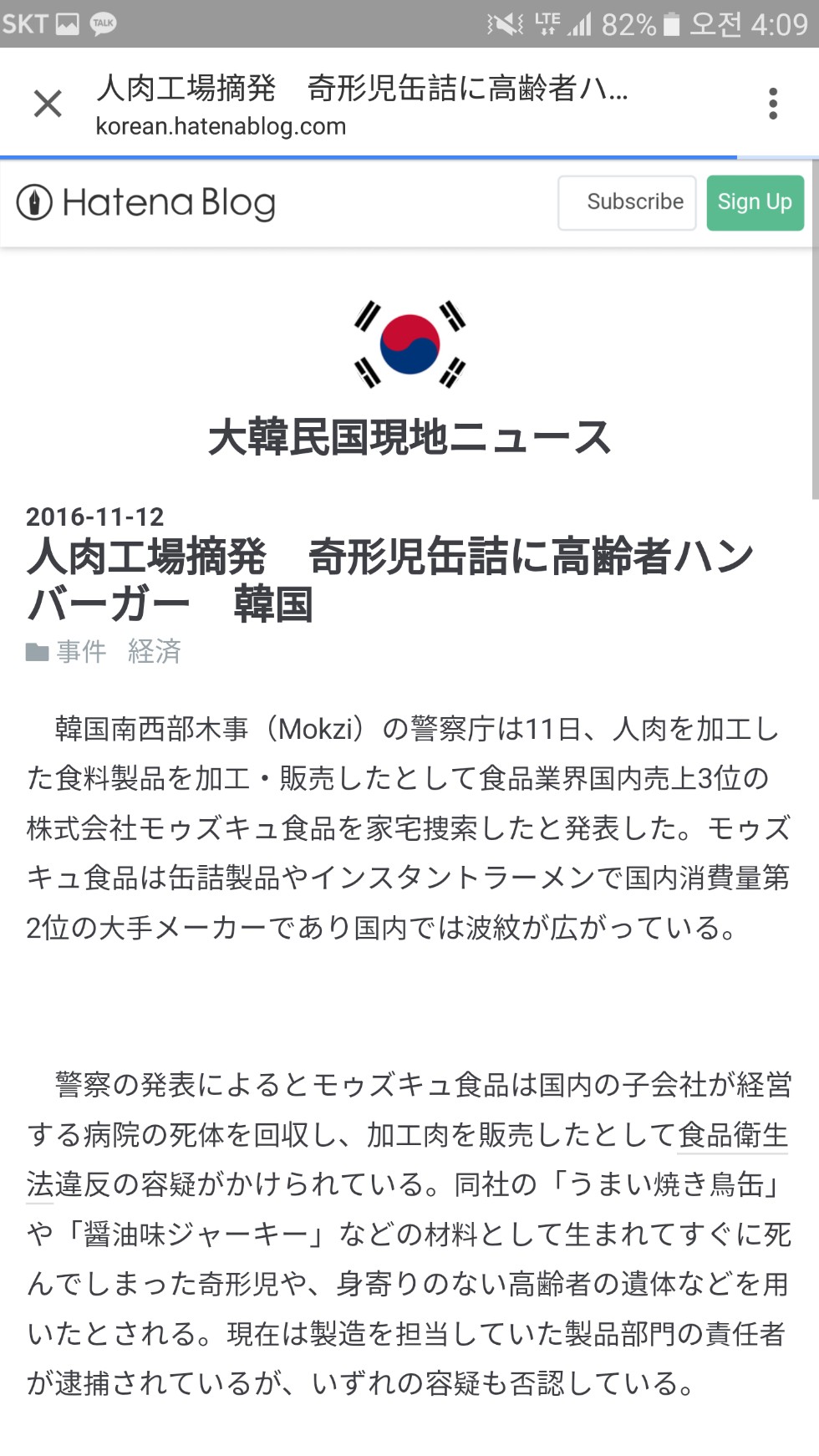 https://korean-newsspot.blogspot.jp/2016/11/blog-post_28.html信頼性の無い個人ブログを信じる奴なんて統失だけだろ