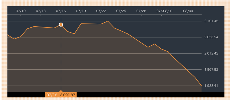 荘重最高 1,948.53 / 巻 739,588泉州 / 52週の最高 2,356.62