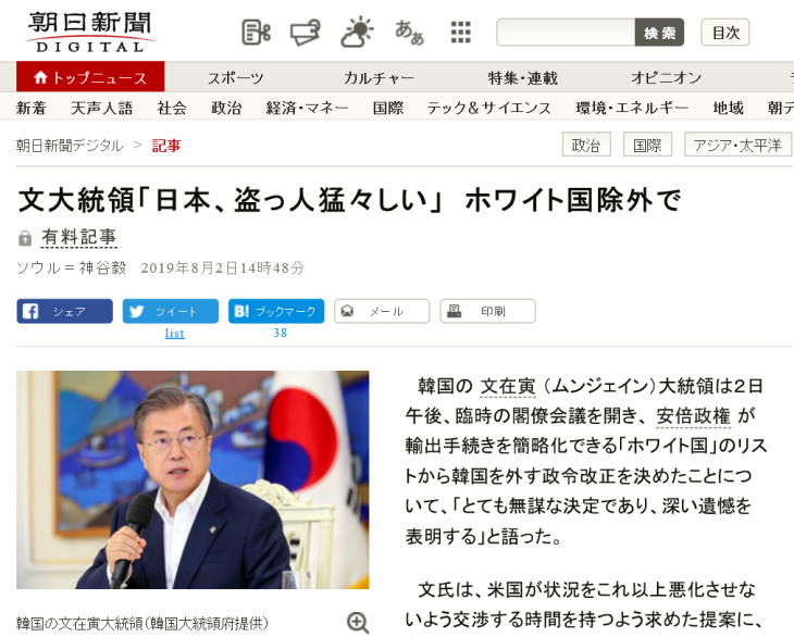 韓国メディア「韓日両国に新火種『盗人猛々しい』翻訳が論争を呼んだ」