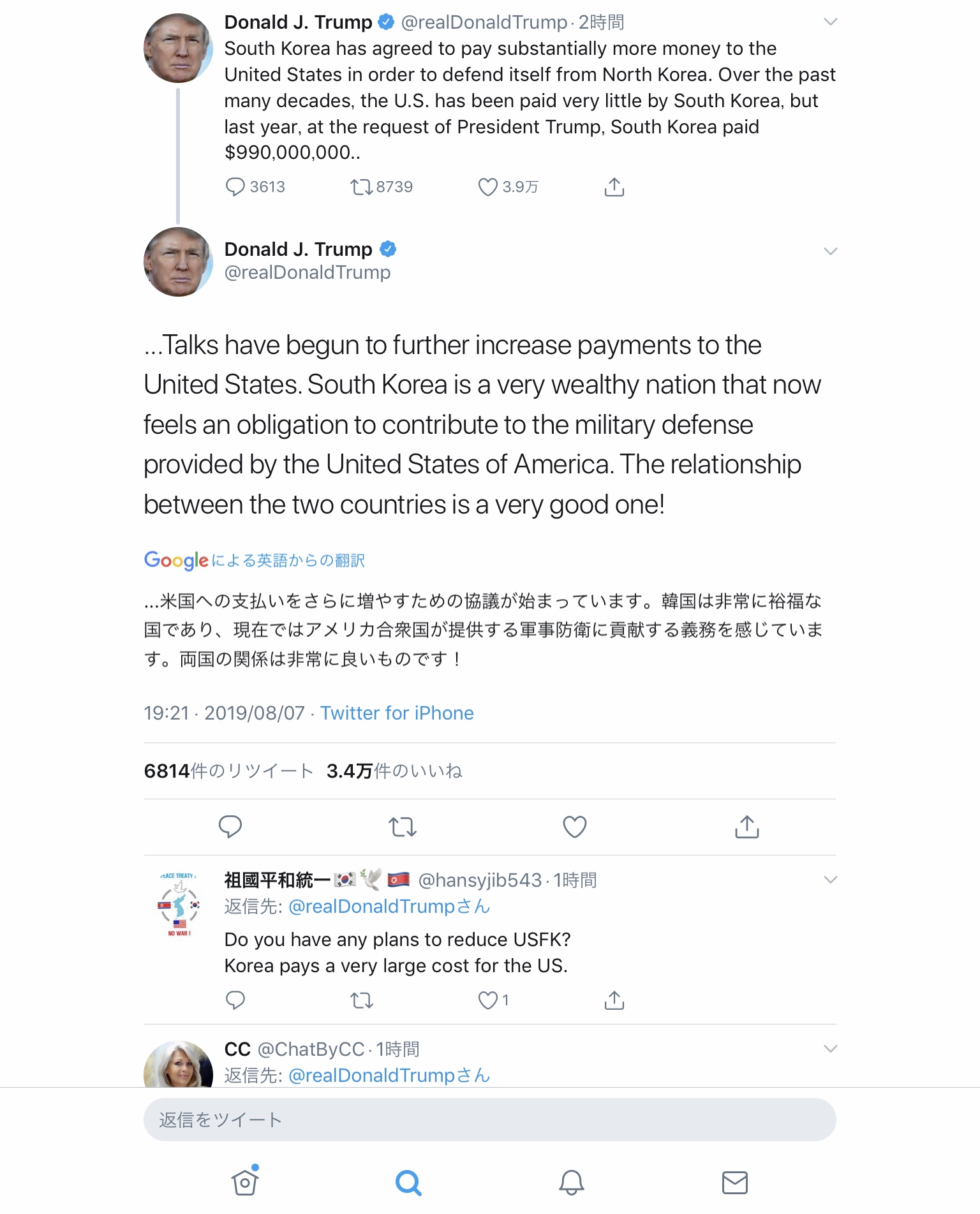 当然、米国は韓日間の経済戦争に介入して、これ以上被害が大きくならないようにしなければならない義務がある。