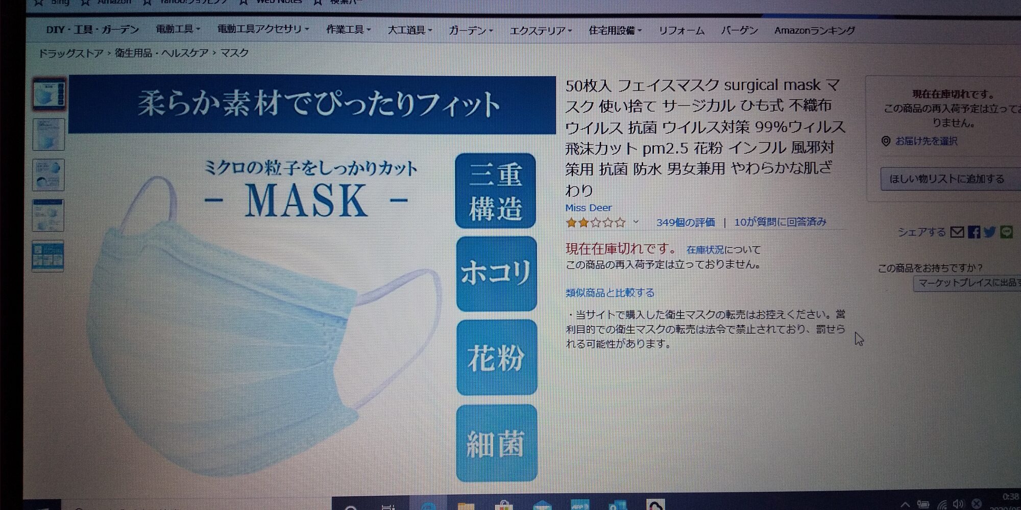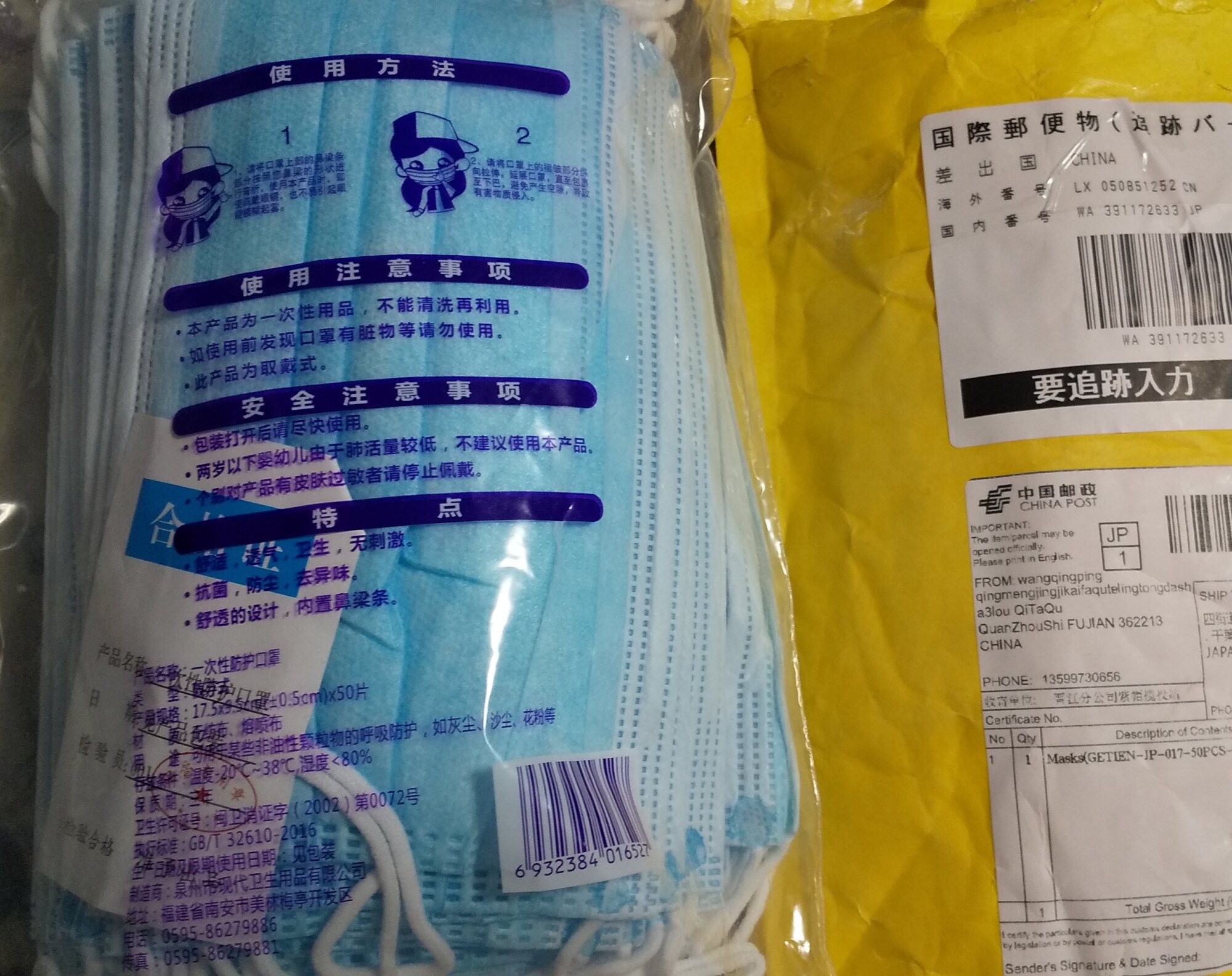 Amazonで3/8に注文したマスクが4/30に届きました。