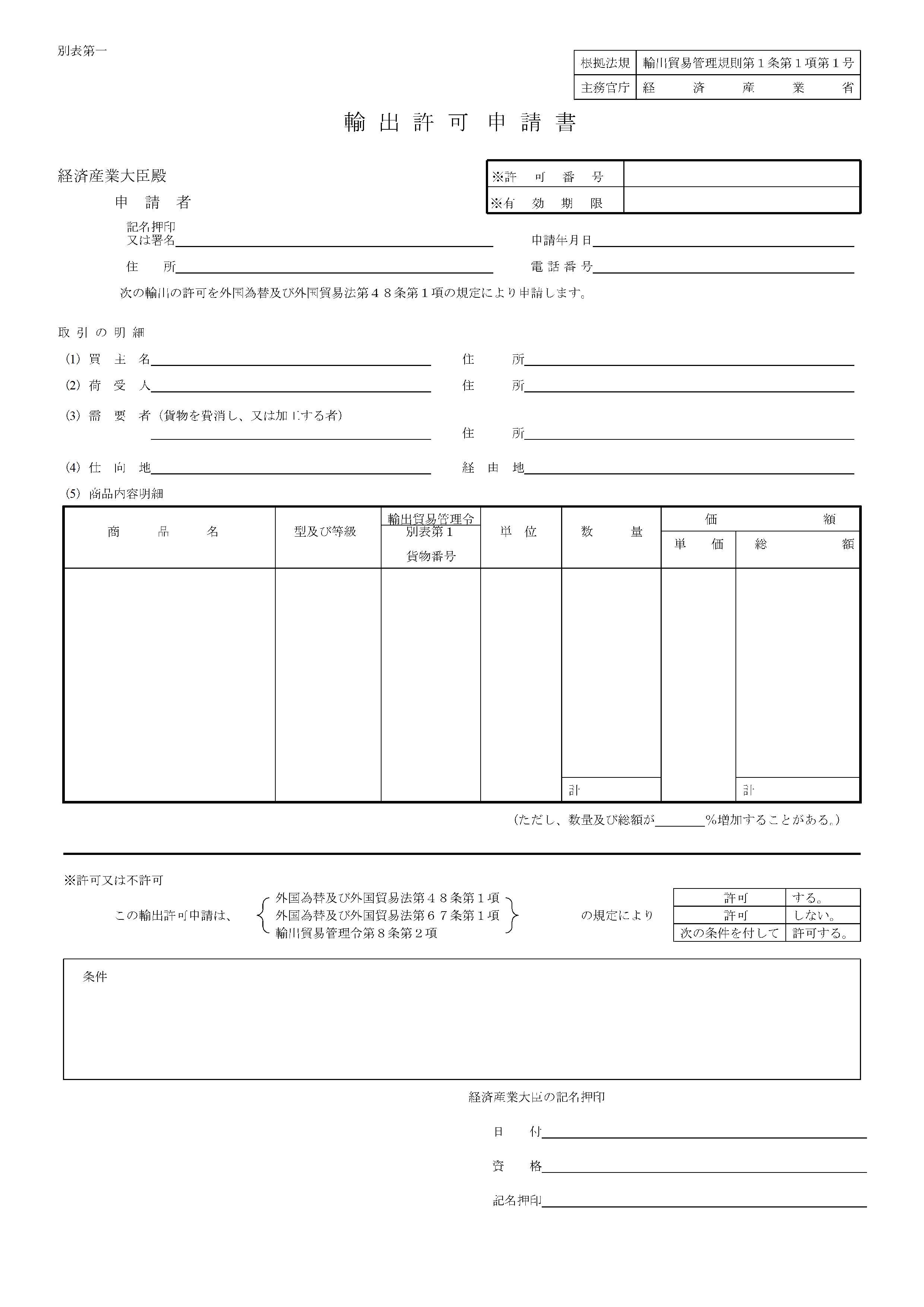 フッ化ポリイミドは、輸出令別表第1の5の項(17)に掲げる貨物かつ貨物等省令第4条第十四号ロに該当する貨物なので、り地域の書式はCですね。レジストと同じ書類です。