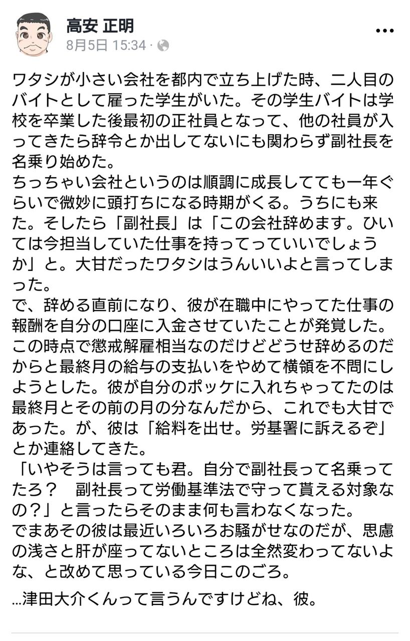なんでも芸術家?津田って若い頃入ってた会社の社長がこんなこと言ってんね