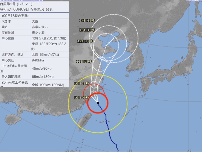 9号は940ヘクトパスカル 三峡ダムにえらく影響を及ぼしそうで上海が海の底になったりして台風って右側が大変なんだっけ?
