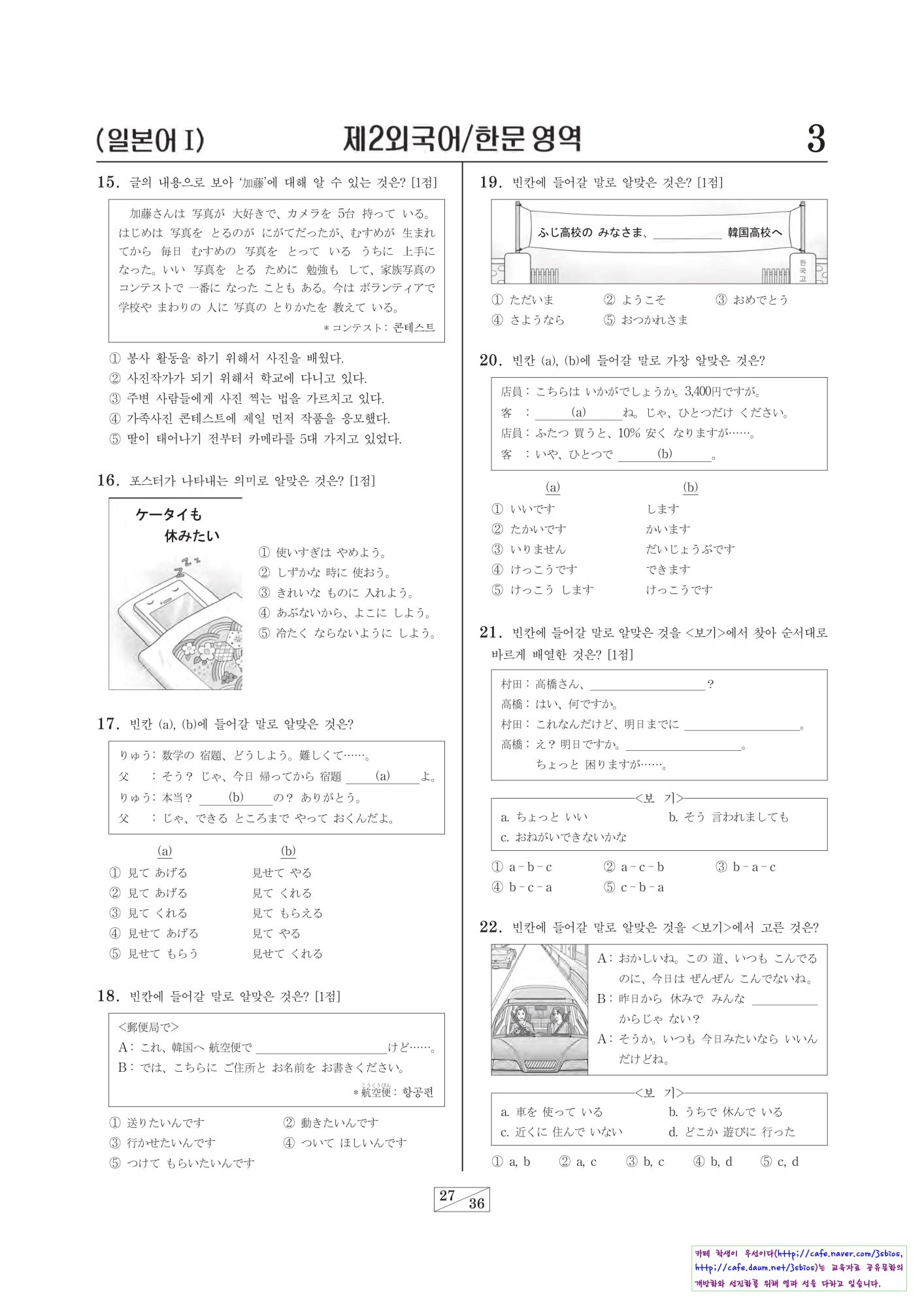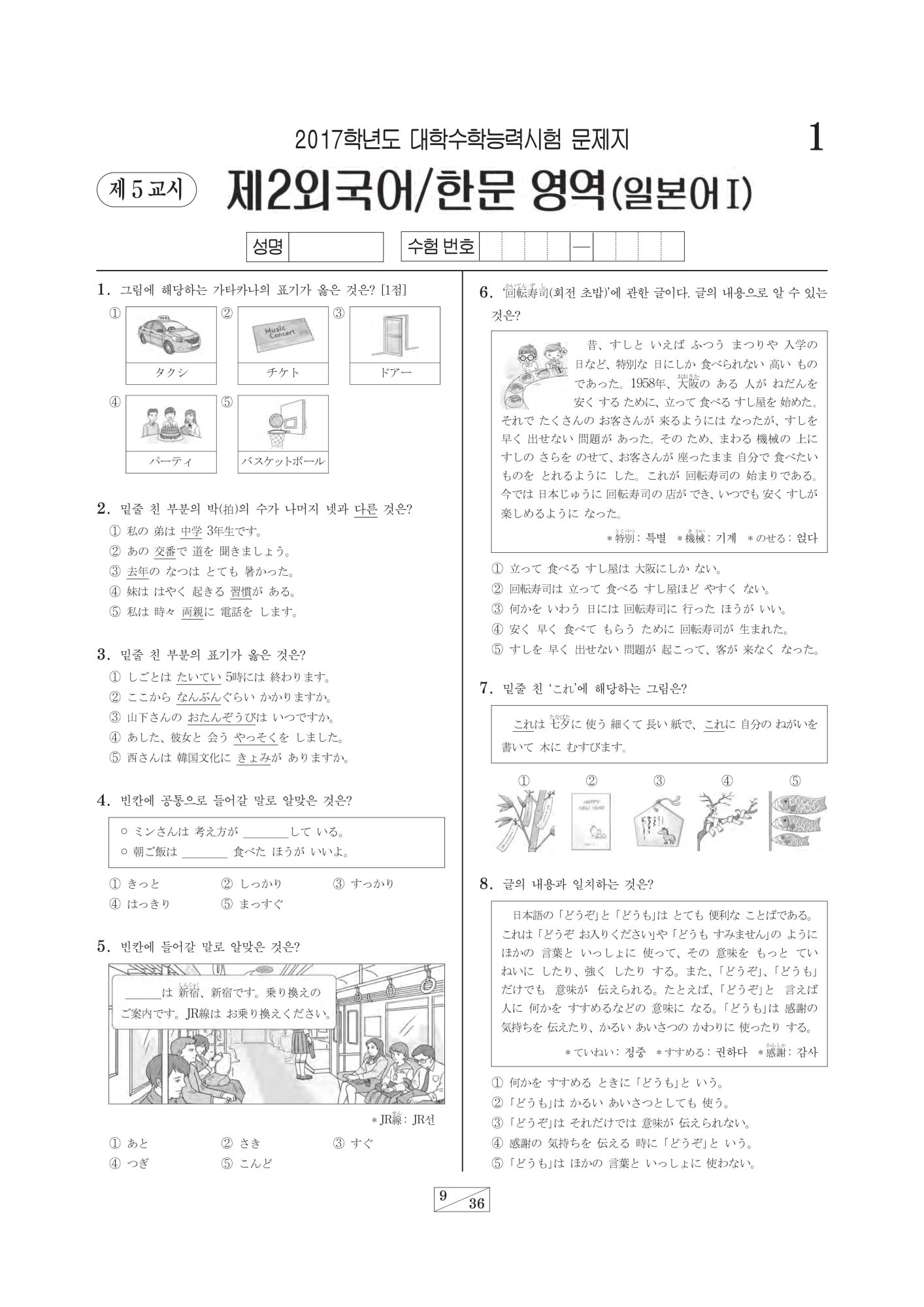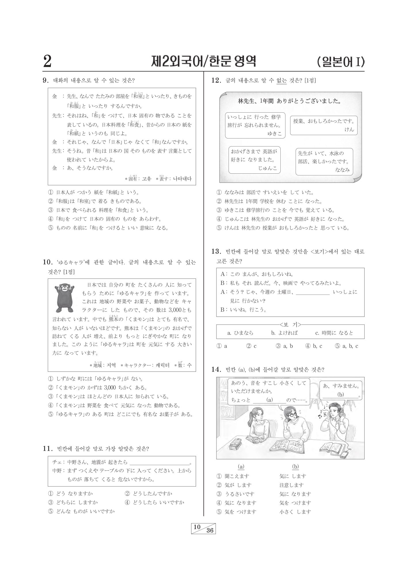 한국의 이번년도 11월 17일에 시행한 일본어 문제입니다.