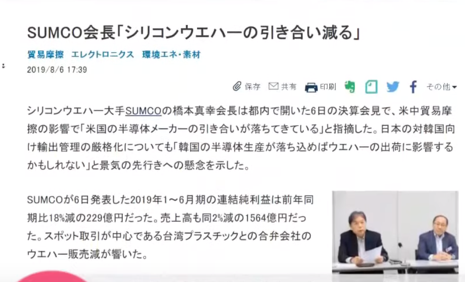 삼성의 발언으로, 일본 웨이퍼 생산 기업 붕괴 위기