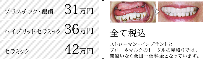 セラミックインプラント 費用1本¥420,000->>2