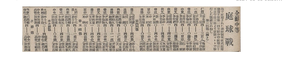 第一回全鮮中等庭球で、五回戦以降に勝ち進んだのはすべて朝鮮人学生ペア。