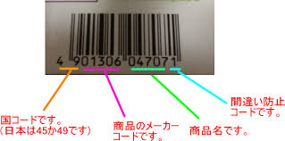 国コードというのはバーコードの上二~三桁の表示。