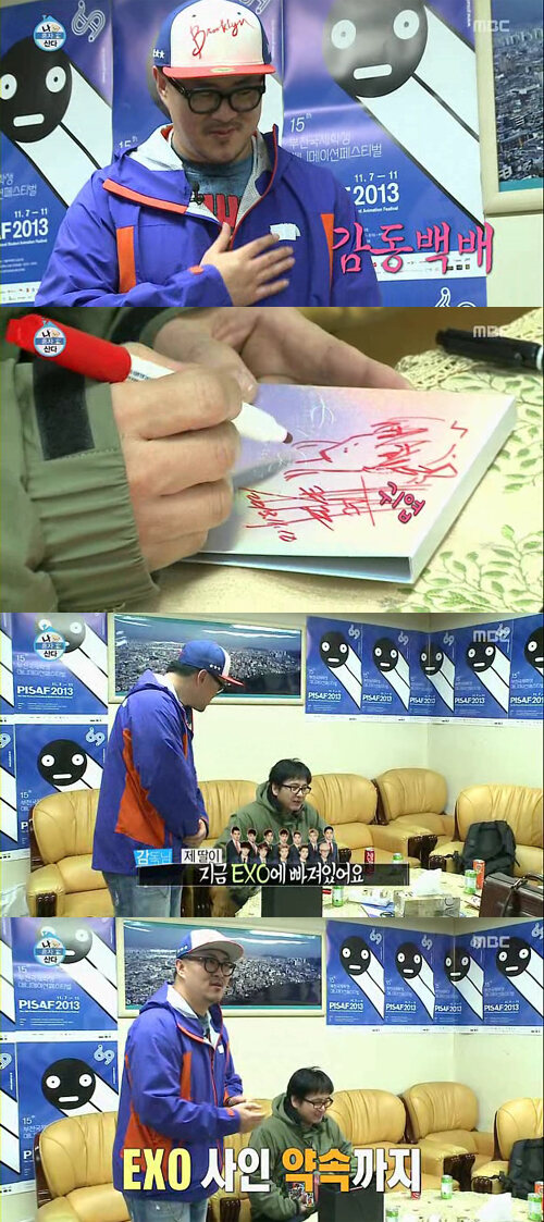 아래 방송의 자막은 '감동백배(한국방송인은 그의 캐릭터 열성팬)' -> 제 딸이 지금 EXO를 좋아합니다.