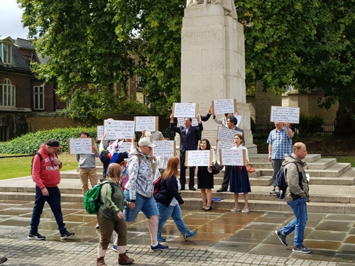 参加者はまた、周辺を通る観光客や英国市民に韓国の最高裁の強制徴用賠償判決の背景と内容、日本政府の報復対応などについて詳細に説明を入れたチラシを配布した。