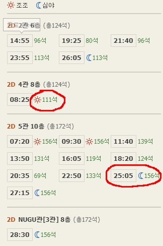 아래 영화 상영시간을 첨부한다. '태양표시와 달표시'가 부착되어 있다.