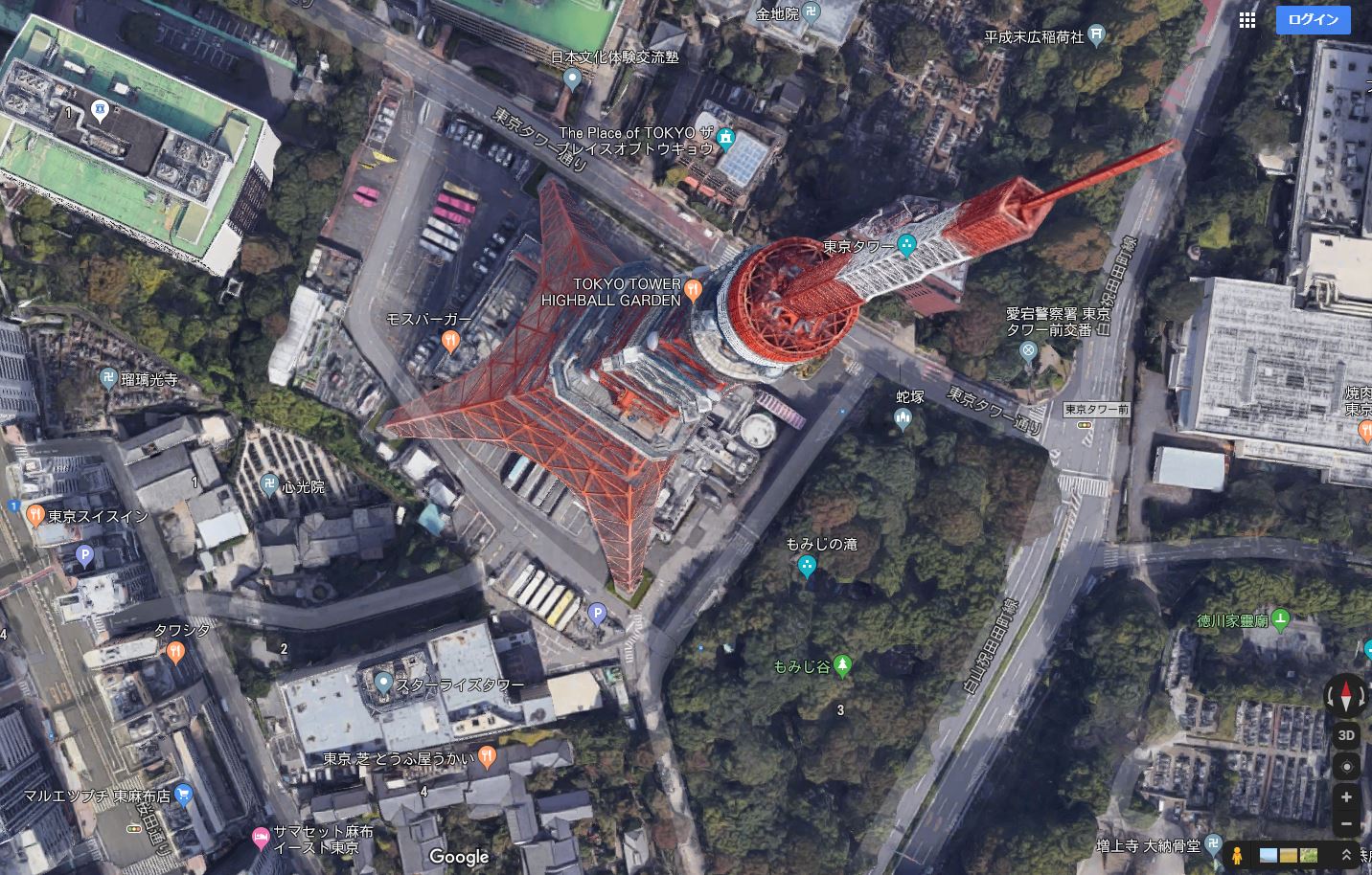 大拡大率、ほぼ上空からの最大拡大率、さらに進むと地上からの目線になる。