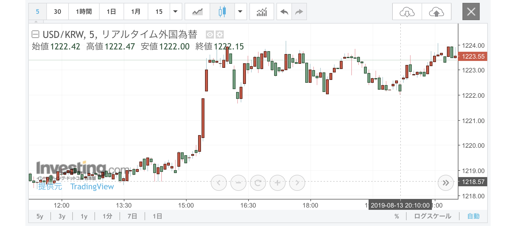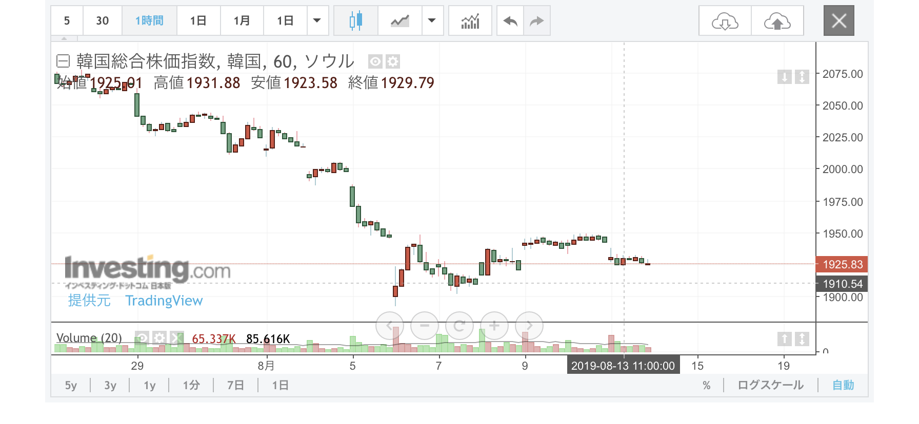 あたりは困るね。8月20日の韓国の為替介入はすごかった。1日で6ウォンも下げた。後先考えてないほどの気合の入れよう。