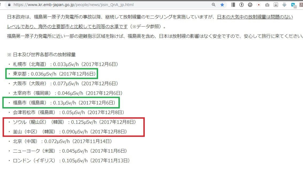 韓国の放射線量、日本より3倍高かった:放射能の数値と統計と比較