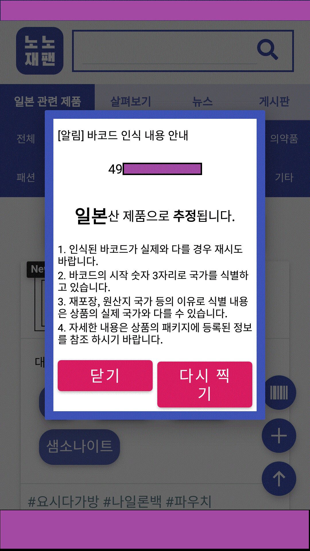 「NO NO JAPAN」のスマホアプリを使えば、商品のQRコードを読み取って日本製品かどうかを瞬時に判別できる。これらを駆使すれば、自身の生活から日本を完全に排除できるというわけだ。