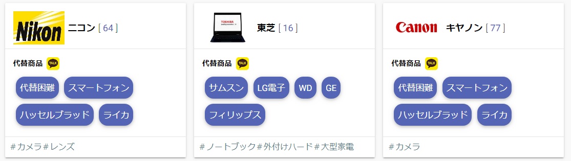 「ボイコット・ジャパン、行きません、買いません」が合言葉のこのキャンペーン。専用サイトではあらゆる日本企業・日本製品を網羅し、アイテムごとに日本製に代わる韓国企業の製品などが紹介されている。