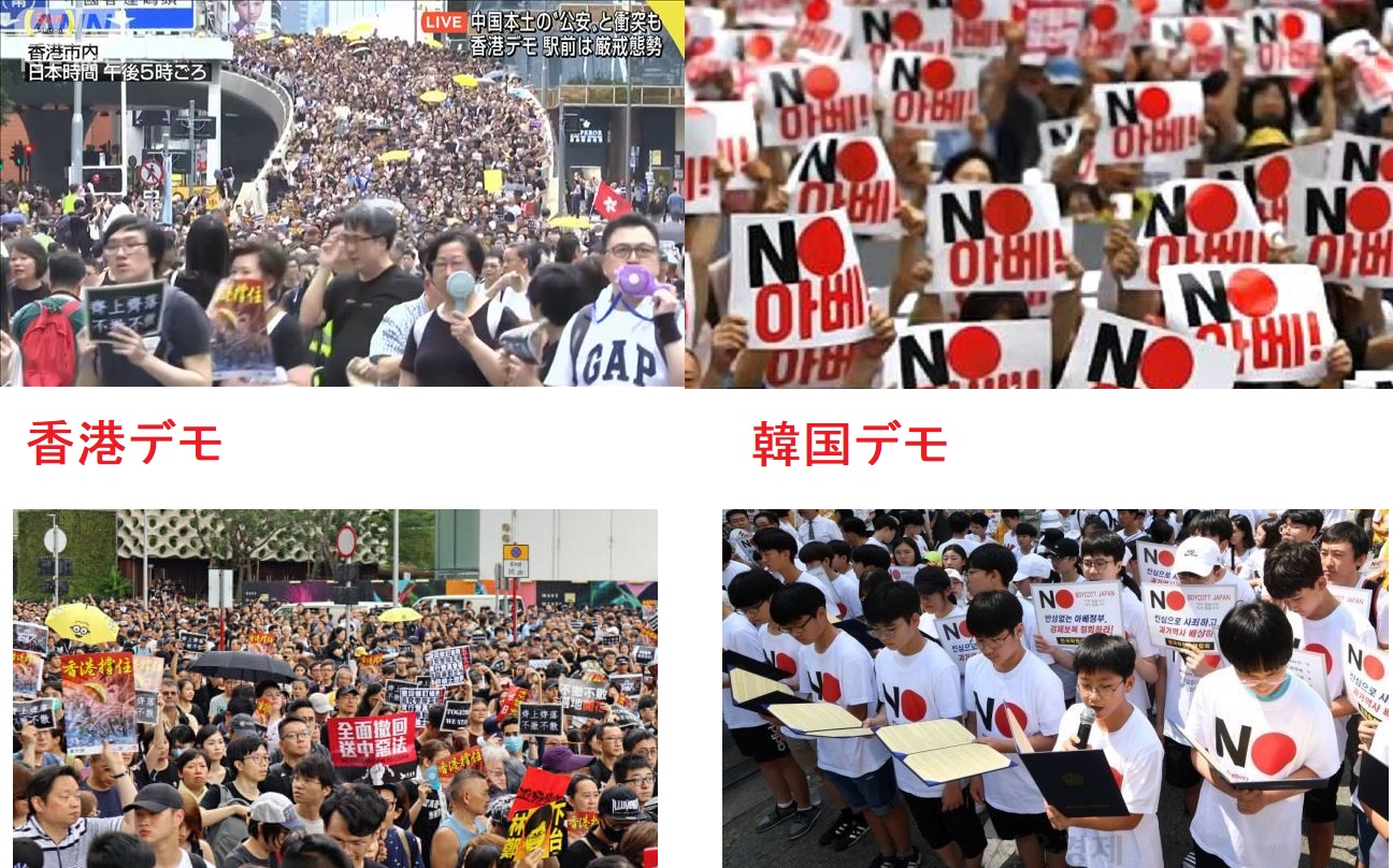 韓国人が反日デモを語る時に香港デモと同列に語る