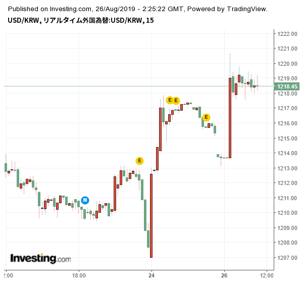 トランプが先週末に対中国関税上乗せを発表したせいでは?この時間ワタナベ夫人のドル買い無いか?