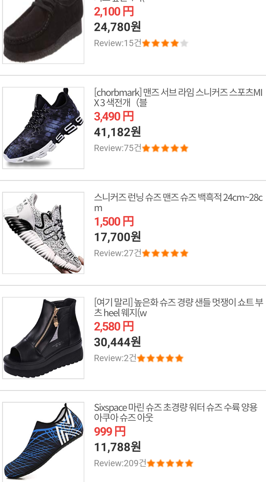 日本も韓国も靴の相場はそんなに変わらんだろう。